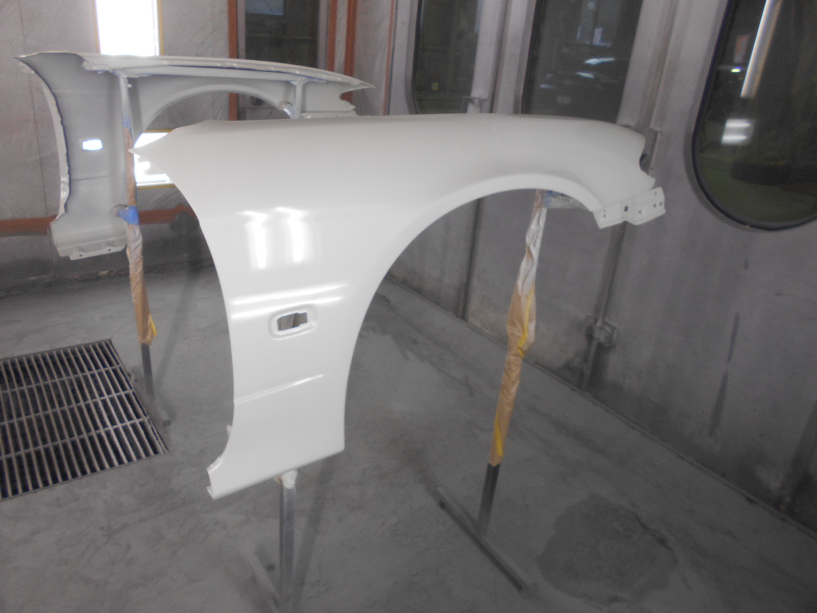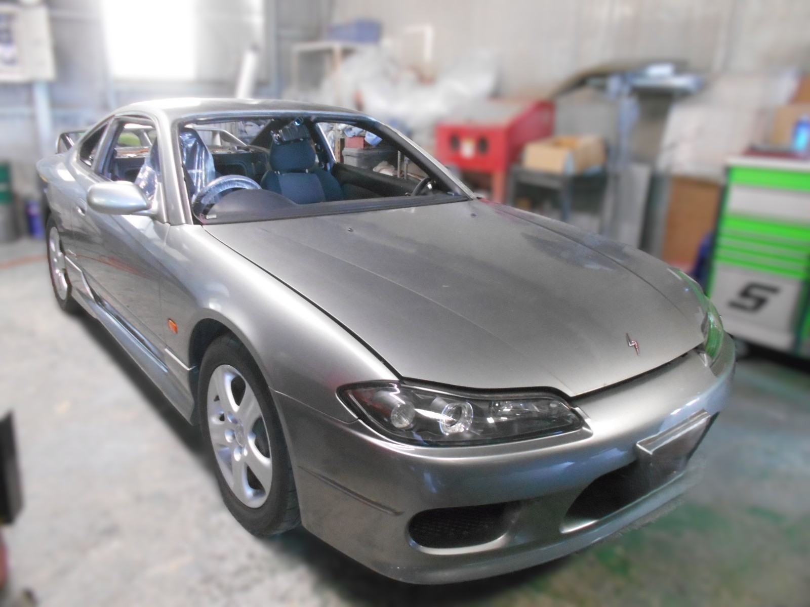 BSYにてオールペンとエキマニ補修をした日産・シルビア(S15)になります。 この年式だとクリヤーの劣化でボデイ全体の塗膜剥離をし、 全てのガラス脱着・モール交換で仕上げました。